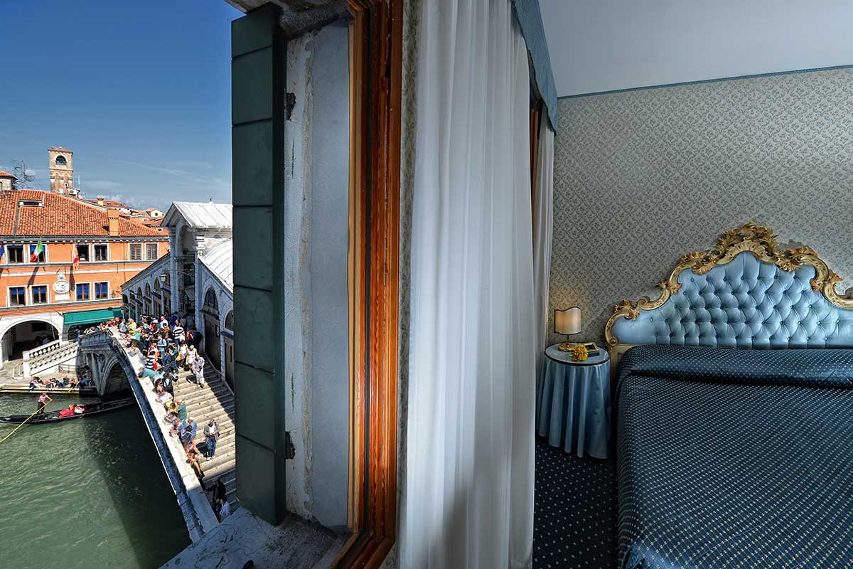 Queste suite, arredate con preziosi tessuti e mobili in stile ‘700, sono il sogno di ogni coppia. Il balcone privato offre una vista privilegiata sul Canal Grande e sul Ponte di Rialto: il luogo più iconico di Venezia diventerà la scenografia indimenticabile dei vostri ricordi più belli.